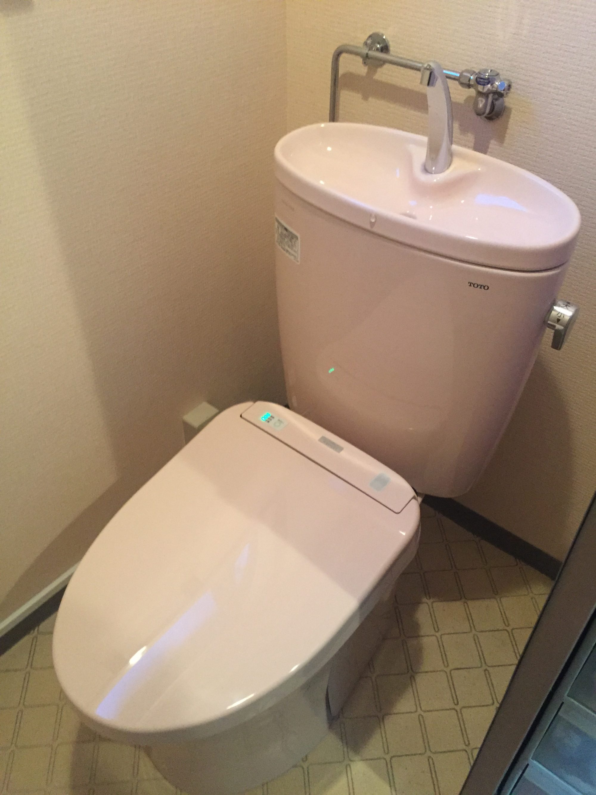 もともと、角に三角型のタンクのあるトイレでした。